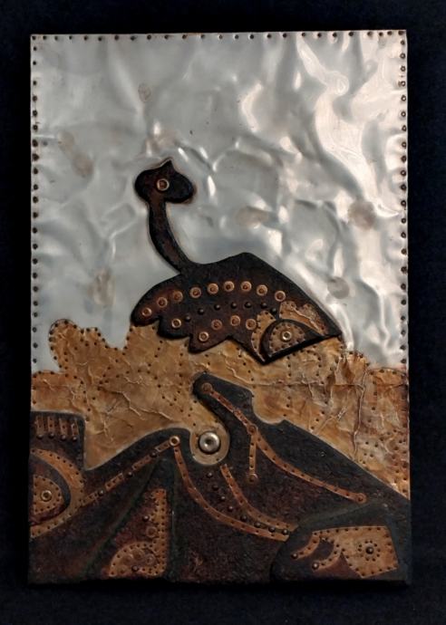 Kombinacija drvo metal (iverica,boja,metal,čavli)
