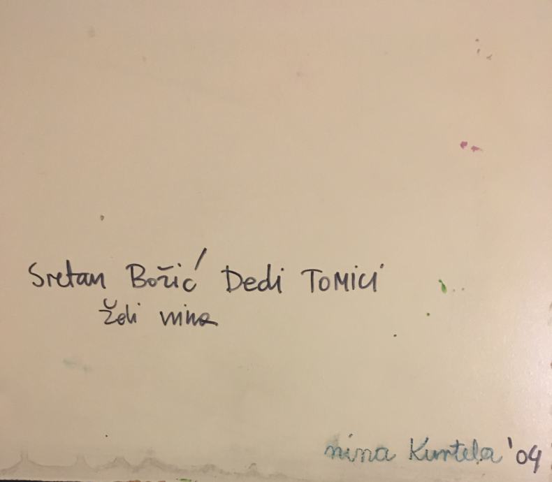 Akril na lesonitu iz 2004. hrvatske akademske slikarice Nine Kurtele. Dimenzije 33x31cm. Nije uokvireno.