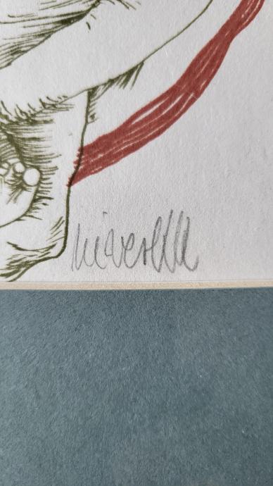 Grafika (svilotisak) iz 1977. otisnuta na 240 gr Rivers papiru, izdana u 70 primjeraka u sklopu izdanja knjige NKK Bože Biškupića, tiskane i uvezene u Nacionalnoj i sveučilišnoj biblioteci u Zagrebu 1977.