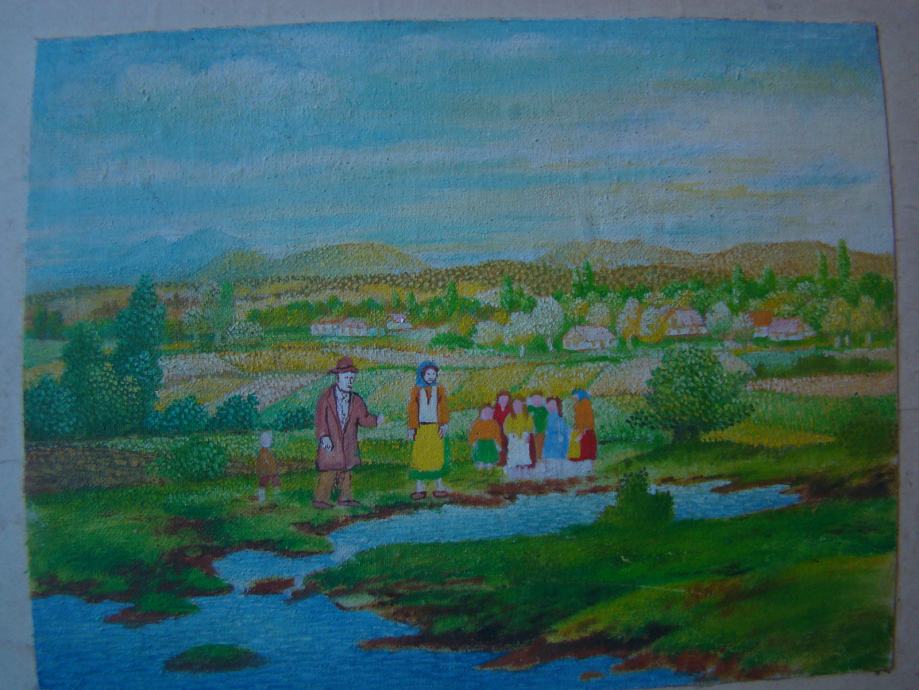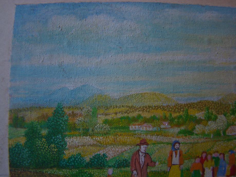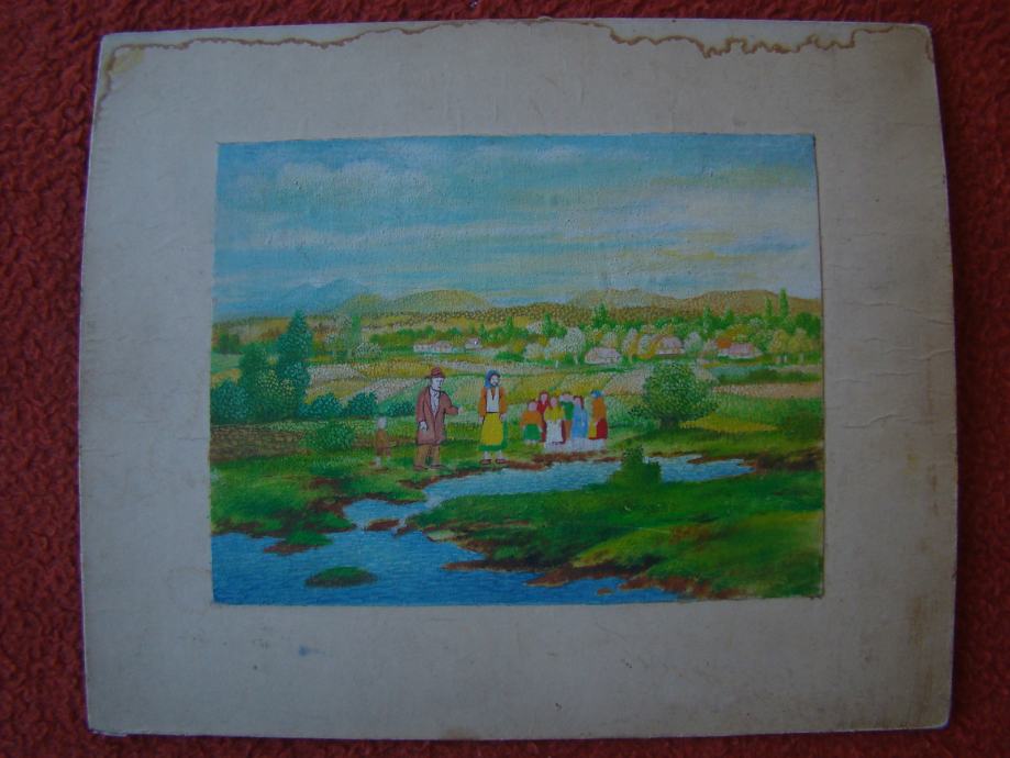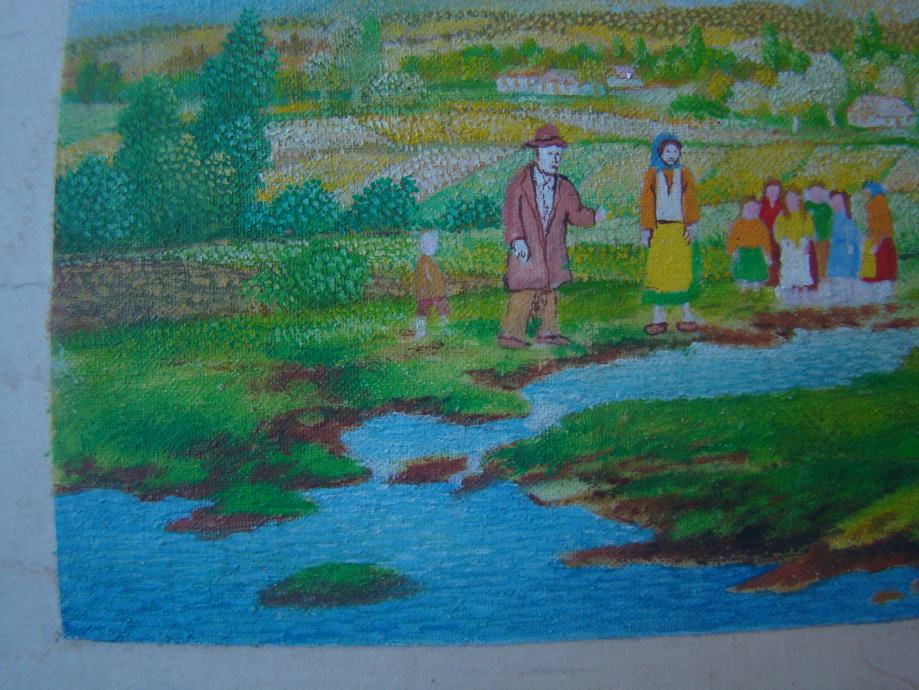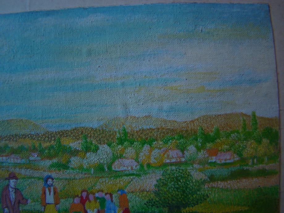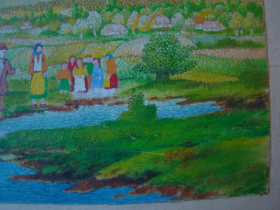 24 x 20 cm ukupno, stanje vidljivo. Platno zaljepljeno za karton.