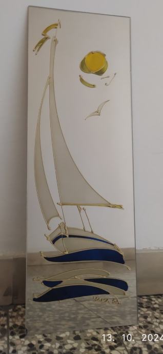 Prodajem ogledalo - umjetničku sliku (motiv: "Jedrilica"; oslikao splitski slikar amater 1990. godine) dimenzija 63 x 22 cm.