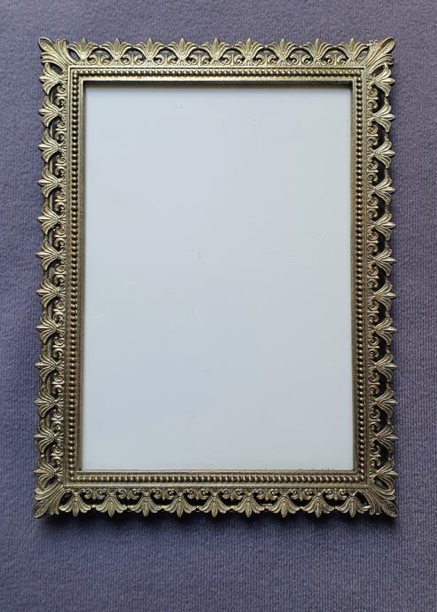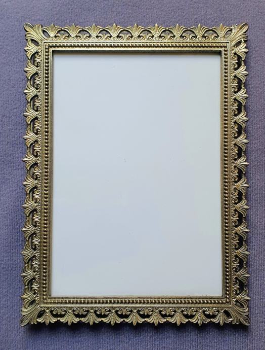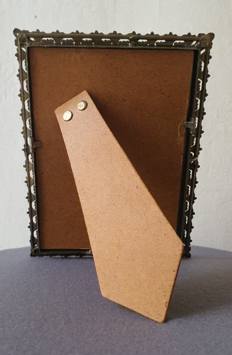 Krasan mesingani okvir za sliku fotografiju ukupne dimenzije:12,4cm x 16,5 cm unutarnji dio za sliku je 10,3cm x 14 5cm predmet je u izvrsnom stanju bez oštećenja