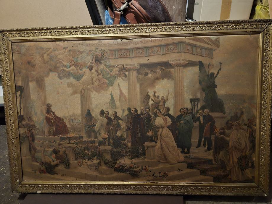 Slika Hrvatskog narodnog preporoda u originalnom okviru iz ranih 1900-tih. Stanje je u skladu s vremenom iz tog doba. Zagreb, centar, 0/9/9/6/3/9/4/9/9/6