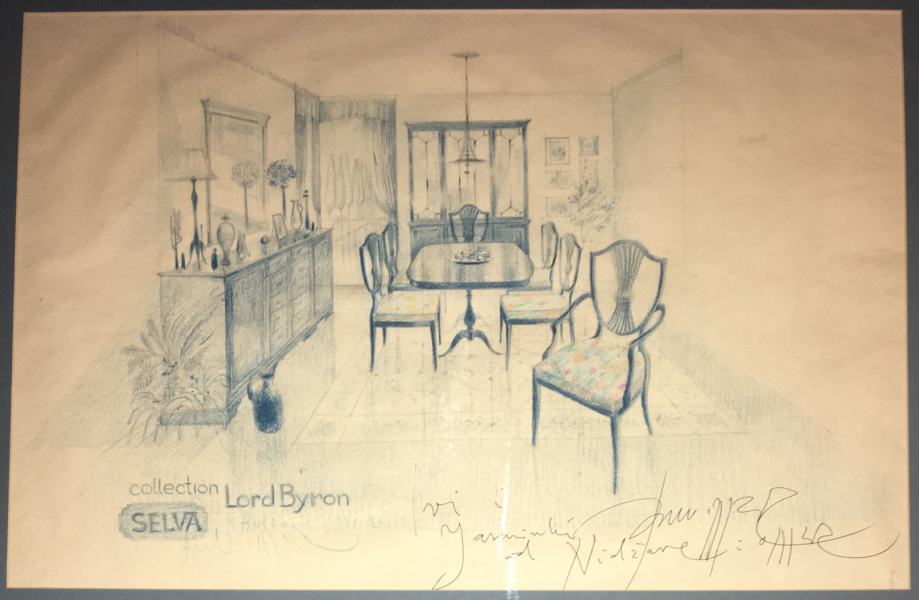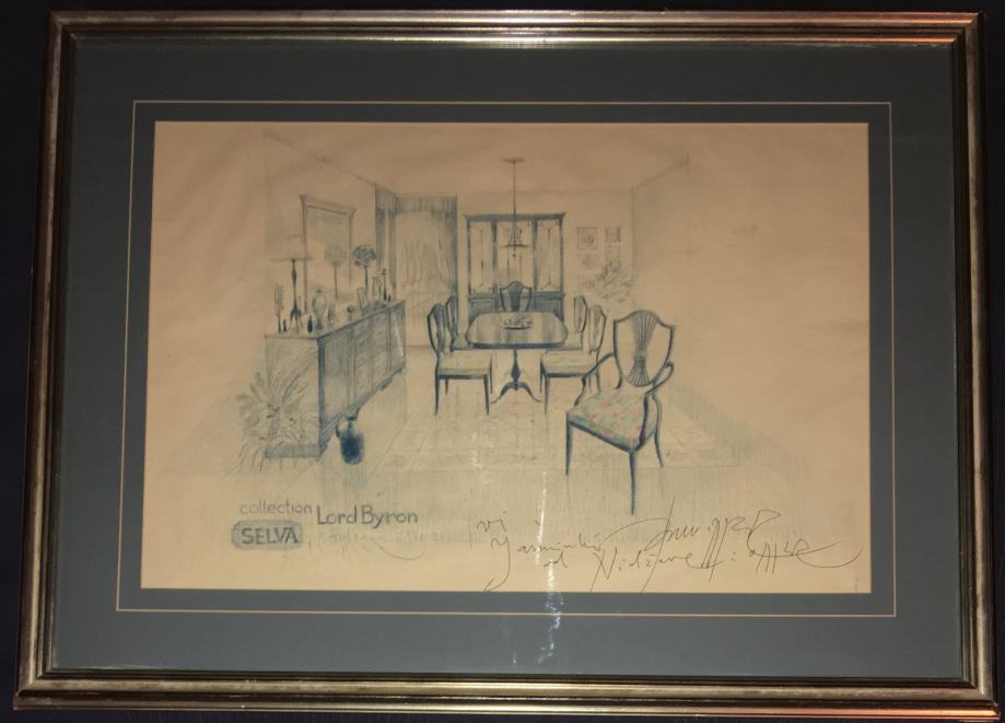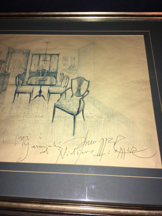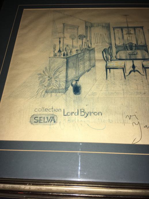 Crtež / skica interijera poznatog slikara i arhitekta Omera Berbera. Galerijski uramljeno i ostakljeno. Dimenzije slike s okvirom su 64x40cm (dimenzije unutar paspartua su 48x32cm).