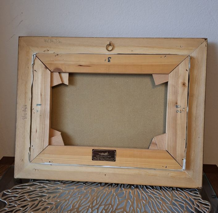 - profesionalno galerijsko uokvirenje, oznake na poleđini