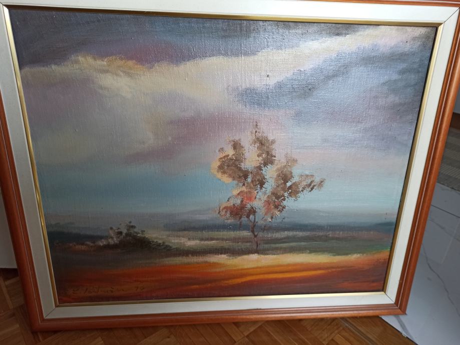 Slika ulje na platnu, uramljena 80x70 cm, neoštećena, Postružin
