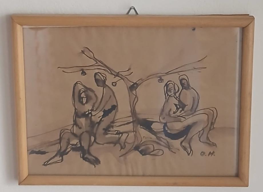 crtež na papiru , tušem od slikara Oskara Hermana , dimenzija 18cm x24 cm