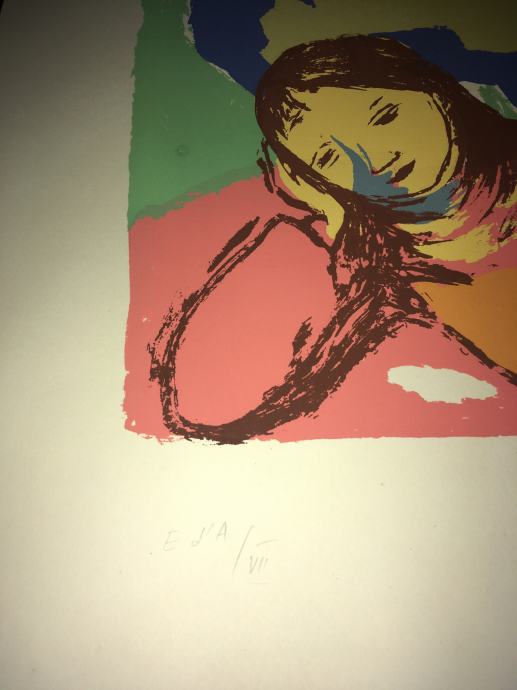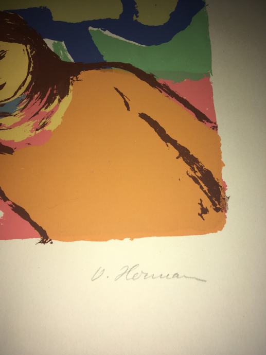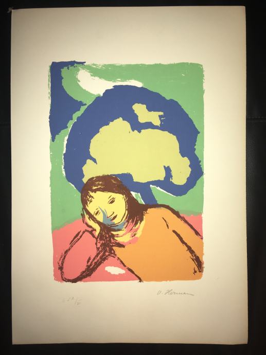 Potpisana i numerirana serigrafija iz 1959.g. jednoga od najvećih hrvatskih slikara, Oskara Hermana, izrađena u čuvenom studiju Brane Horvata. Dimenzije serigrafije su 50x35cm.