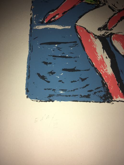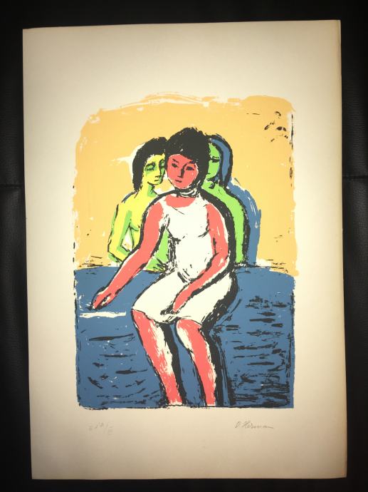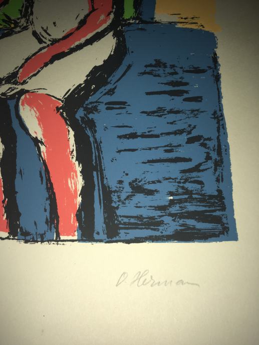 Potpisana i numerirana serigrafija iz 1959.g. jednoga od najvećih hrvatskih slikara, Oskara Hermana, izrađena u čuvenom studiju Brane Horvata. Dimenzije serigrafije su 50x35cm.