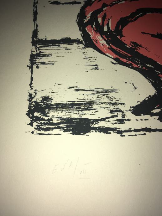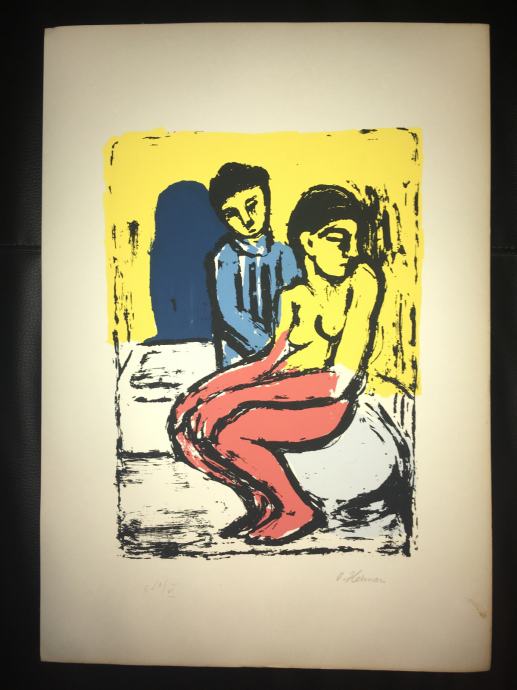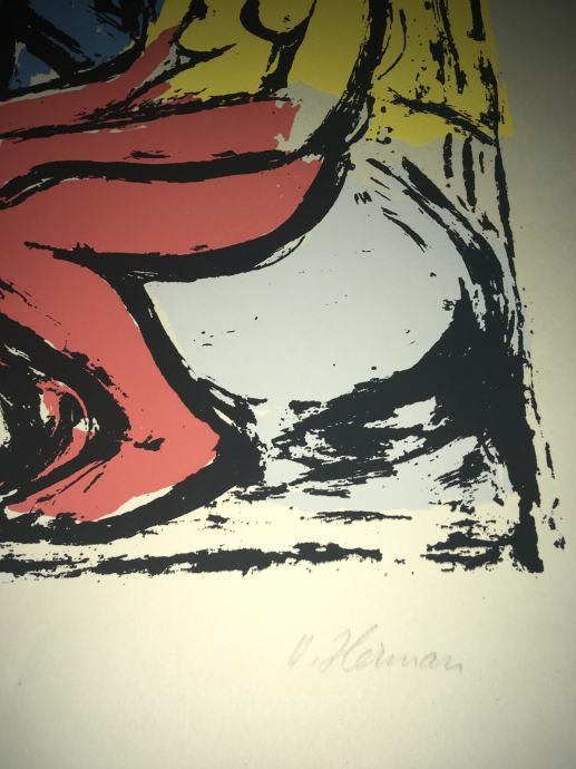 Potpisana i numerirana serigrafija iz 1959.g. jednoga od najvećih hrvatskih slikara, Oskara Hermana, izrađena u čuvenom studiju Brane Horvata. Dimenzije serigrafije su 50x35cm.