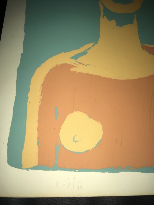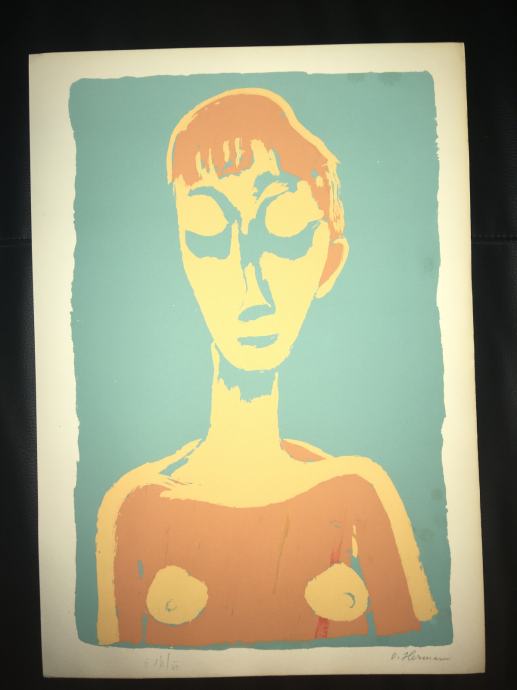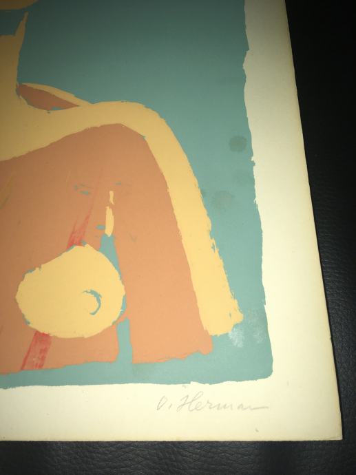 Potpisana i numerirana serigrafija iz 1959.g. jednoga od najvećih hrvatskih slikara, Oskara Hermana, izrađena u čuvenom studiju Brane Horvata. Dimenzije serigrafije su 50x35cm.