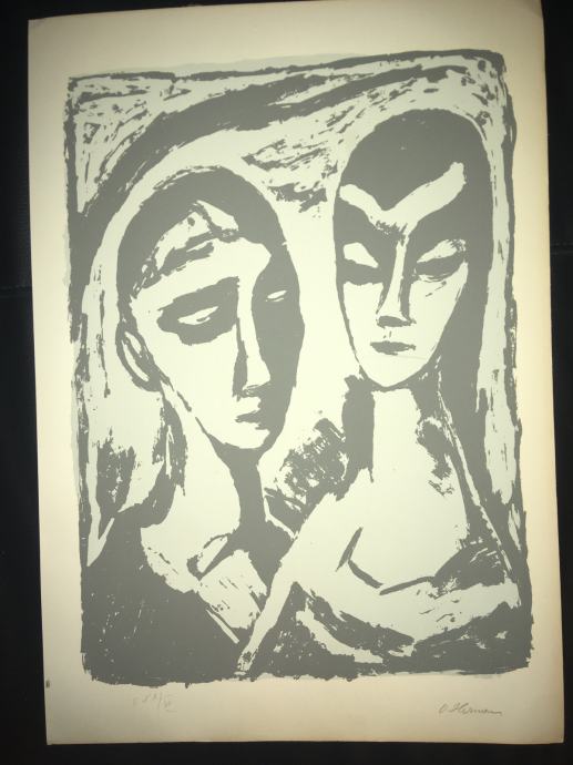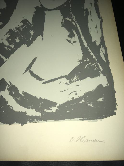 Potpisana i numerirana serigrafija iz 1959.g. jednoga od najvećih hrvatskih slikara, Oskara Hermana, izrađena u čuvenom studiju Brane Horvata. Dimenzije serigrafije su 50x35cm.