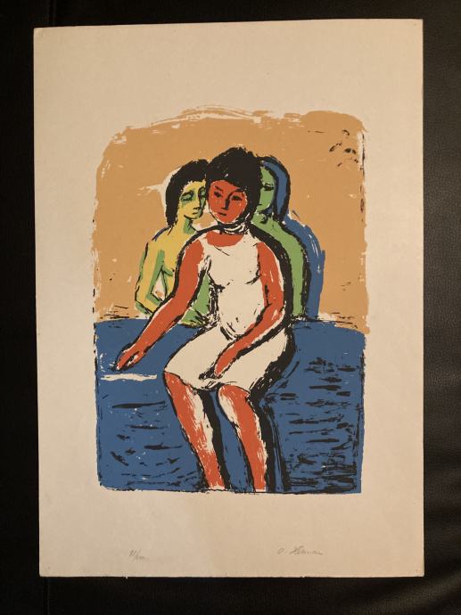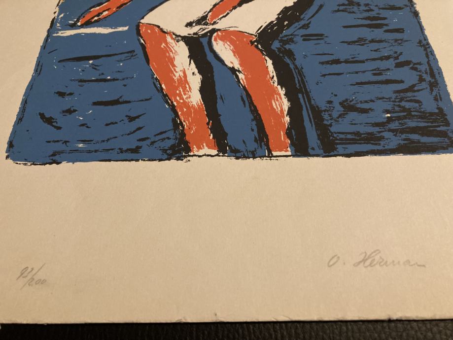 Potpisana i numerirana serigrafija iz 1959.g. jednoga od najvećih hrvatskih slikara, Oskara Hermana, izrađena u čuvenom studiju Brane Horvata. Dimenzije serigrafije su 50x35cm.