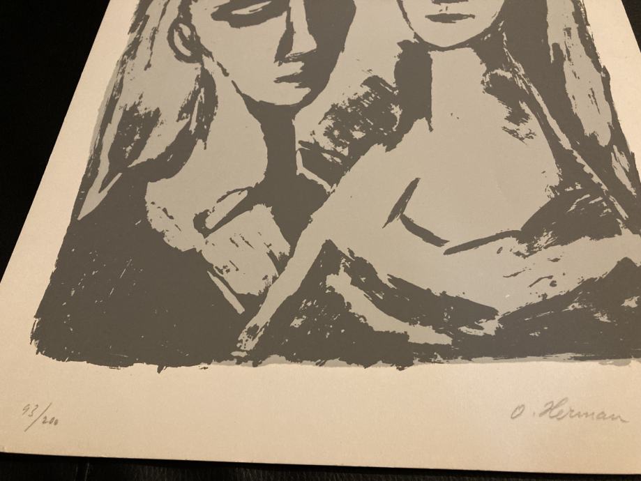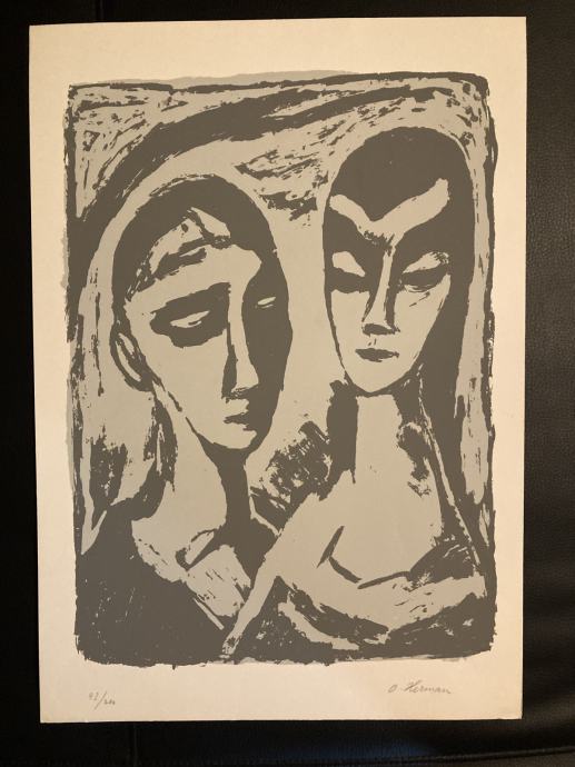 Potpisana i numerirana serigrafija iz 1959.g. jednoga od najvećih hrvatskih slikara, Oskara Hermana, izrađena u čuvenom studiju Brane Horvata. Dimenzije serigrafije su 50x35cm.