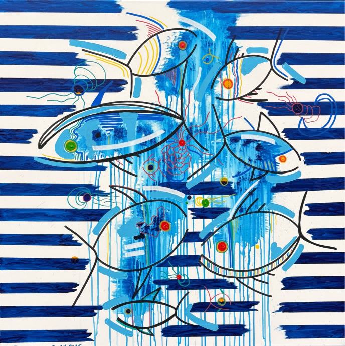 Originalna slika akademskog slikara Ostrmana , 100x100 cm , iz serije "Play" .