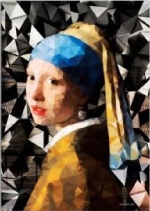 Moderna, geometrijska interpretacija poznatog remek-djela Johannesa Vermeera, Djevojka s bisernom naušnicom."Girl with Pearl"