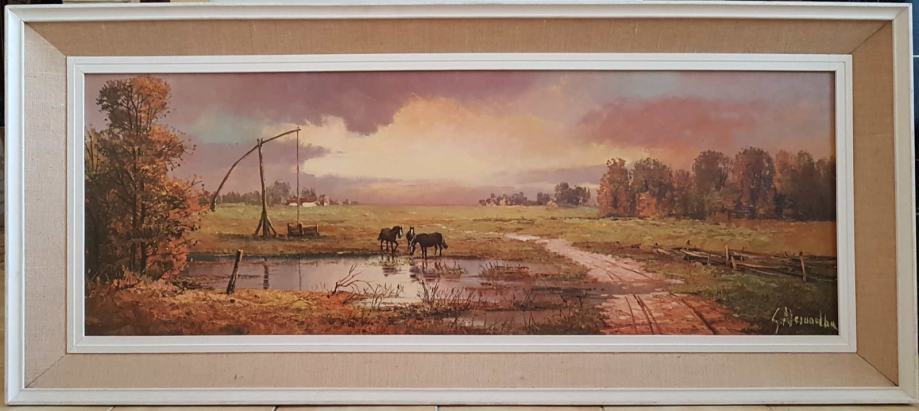 Dimenzije okvira: 114x50 cm. Ova reprodukcija je u vrlo dobrom stanju, bez oštećenja, boravila isključivo u nepušačkom ambijentu.