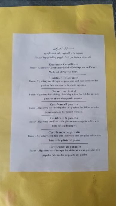 Papirus, original iz Egipta, sa certifikatom