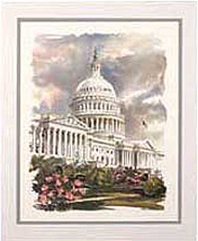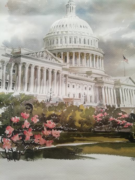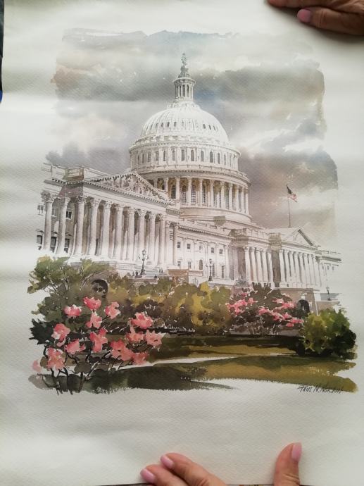 Prodajem print akvarela americkog umjetnika Paul Nortona, The Capitol Hill. (east side)