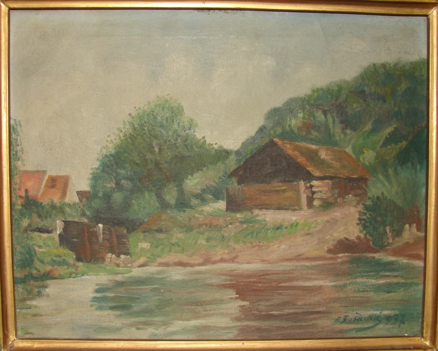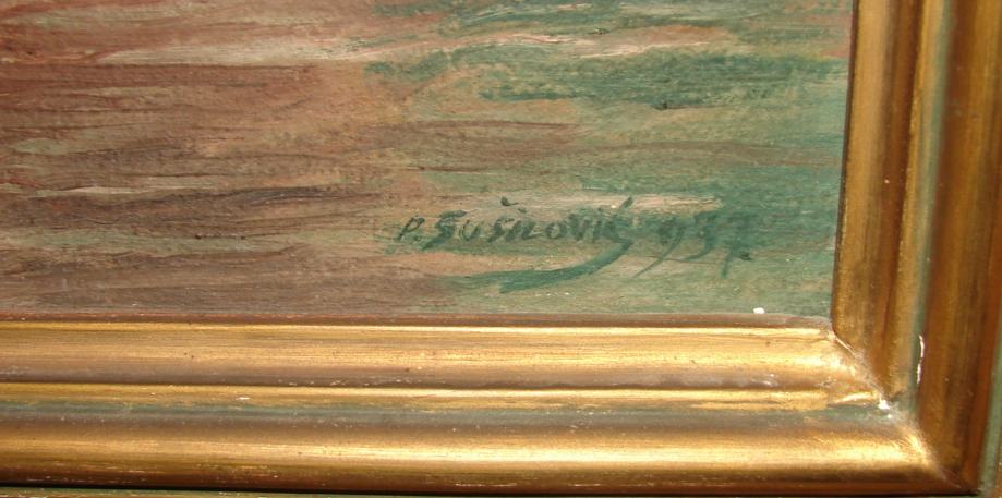 Pavao Sušilović – Ulje na platnu, izrazito masivni drveni okvir. Dimenzije slike s okvirom su 44x38cm (sama slika je cca 30x23cm).