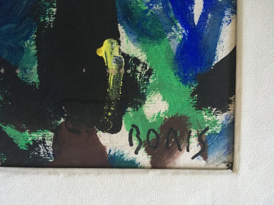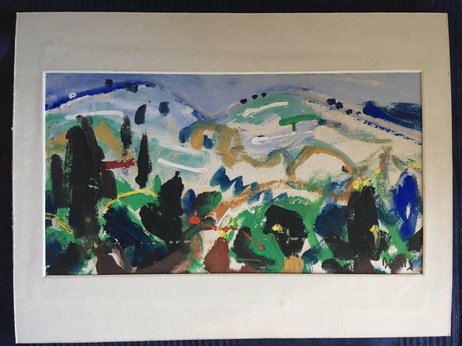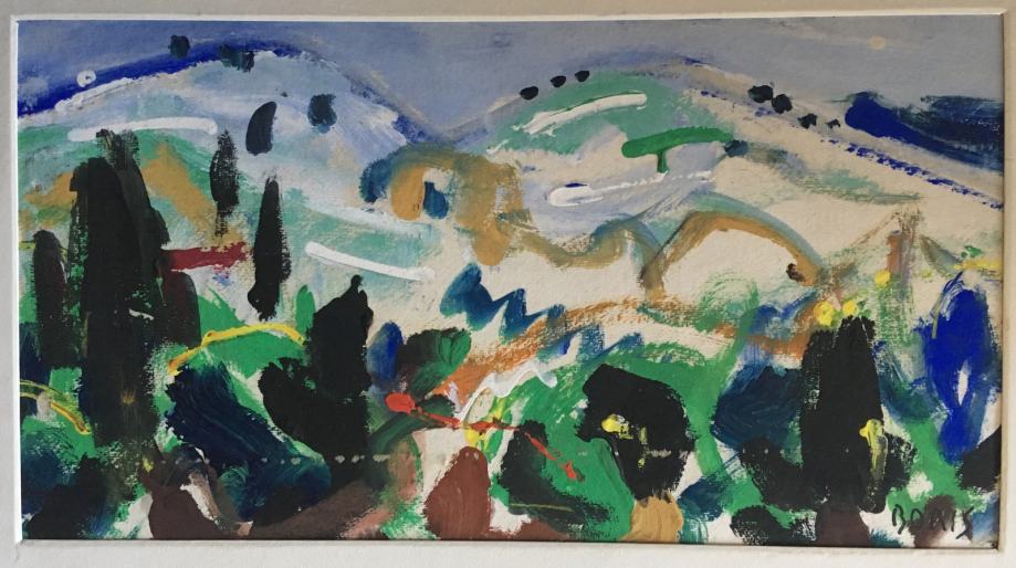 Izvrstan akril na kartonu iz 80-tih, motiv pejzaž, potpisano s "Boris" (pretpostavljam da je autor hrvatski slikar Boris Mardešić ali nisam siguran). Dimenzije slike su 43x32cm (unutar paspartua 37x20cm).