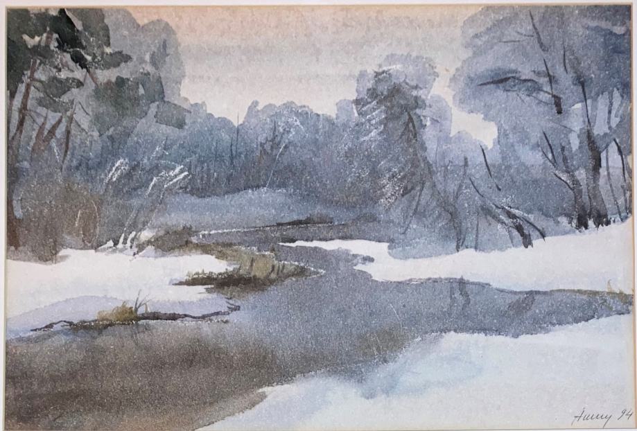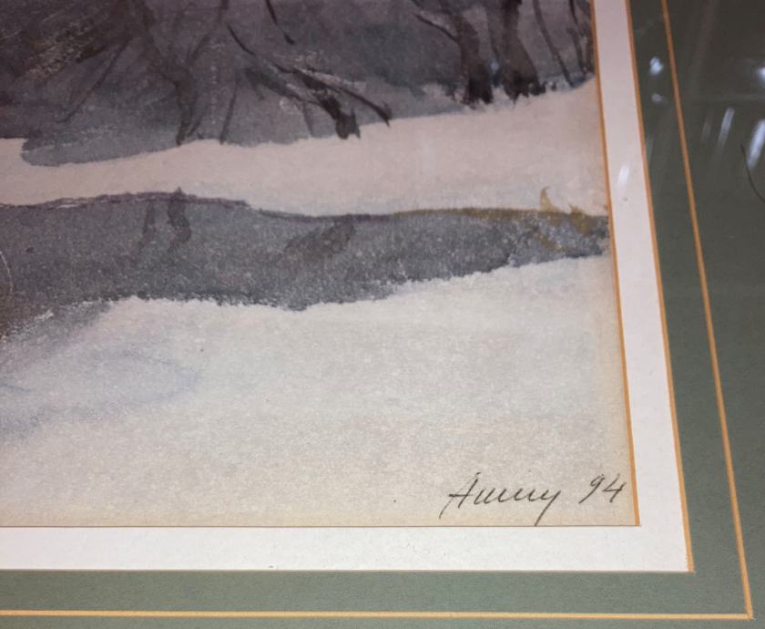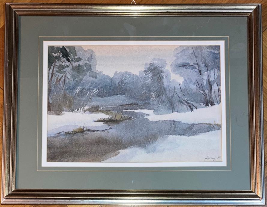 Izvrstan akvarel s motivom pejzaža, meni nepoznatog autora (potpis vidljiv na fotografijama). Kvalitetan galerijski okvir sa staklom i dvostrukim paspartuom. DImenzije s okvirom 60x47cm (unutar paspartua 40x27cm). Cijena je fiksna.