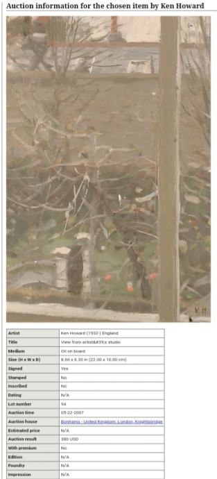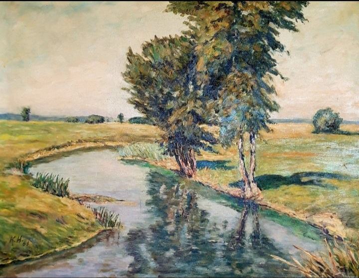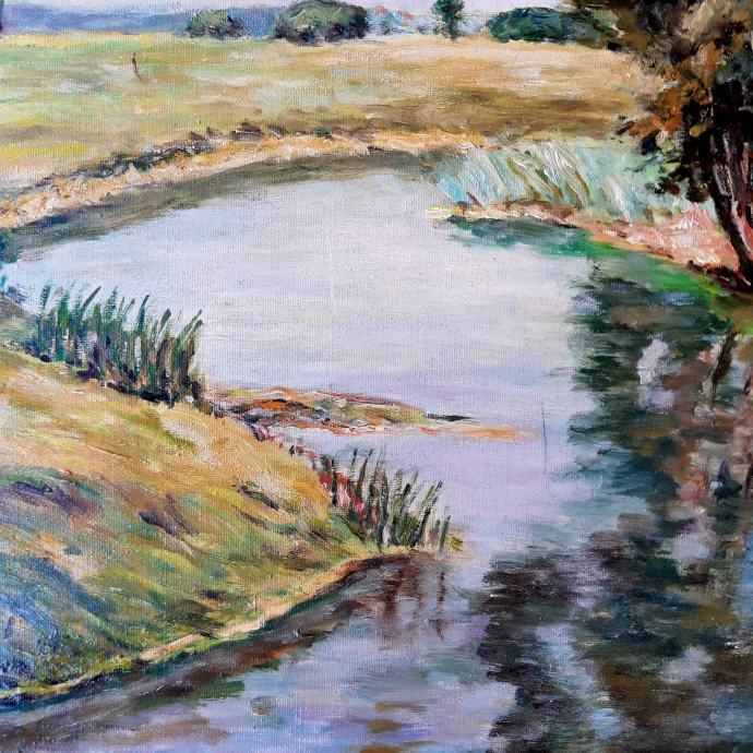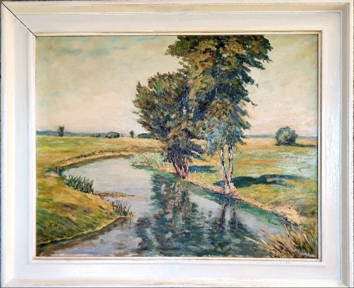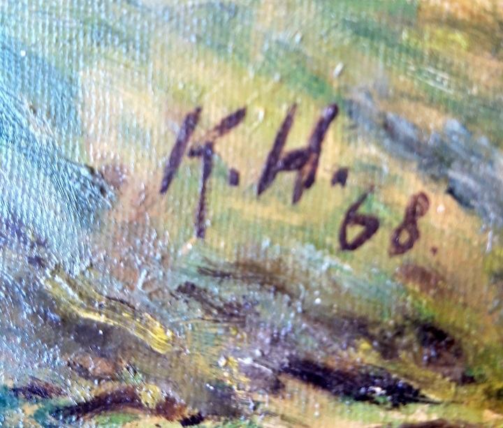 ULJE NA PLATNU,VELIČINA SLIKE BEZ OKVIRA JE 59x46 cm,POTPIS AUTORA I GODINA NASTANKA VIDLJIVI SU U DONJEM LIJEVOM KUTU K.H.68(KEN HOWARD rođ.26.prosinca 1932-dob 89 godina u Londonu,UK),SLIKA PRIKAZUJE PEJZAŽ NEKOG MJESTA,OČUVANOST SLIKE JE VEOMA DOBRA,SLIKA NEMA NIKAKVIH OŠTEČENJA ŠTO JE I VIDLJIVO IZ PRILOŽENIH FOTOGRAFIJA.UZ FOTOGRAFIJU SLIKE POSTAVIT ČU VEČINU POTPISA KOJE JE AUTOR KORISTIO KOD POTPISIVANJA SVOJIH DJELA,POSTAVIT ČU PAR SLIKA TOG AUTORA GDJE JE VIDLJIV POTPIS IZRAŽEN INICIJALIMA.