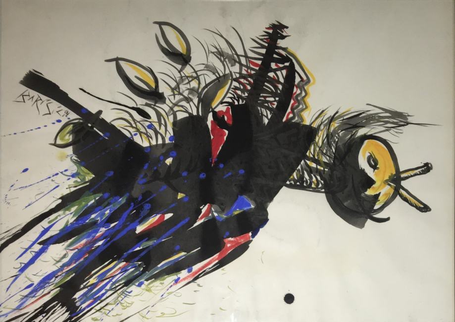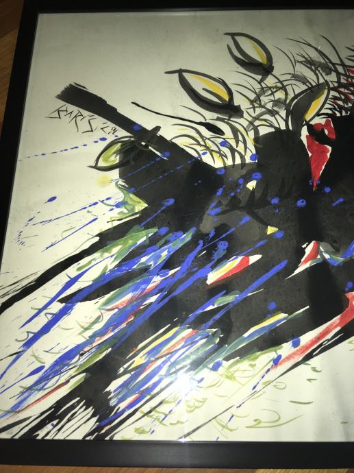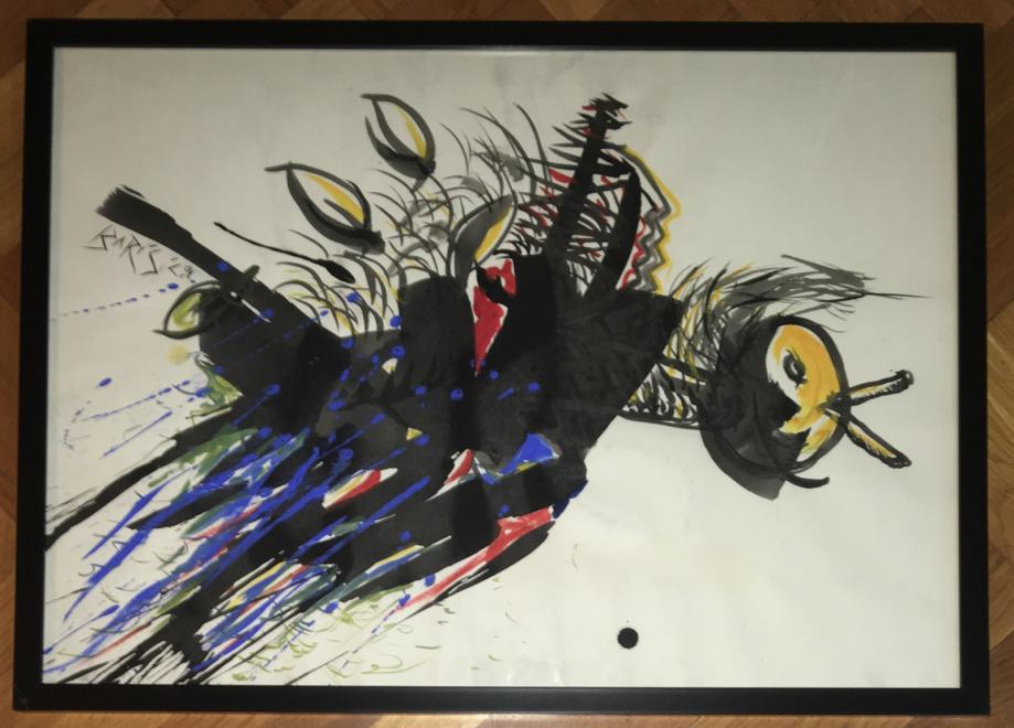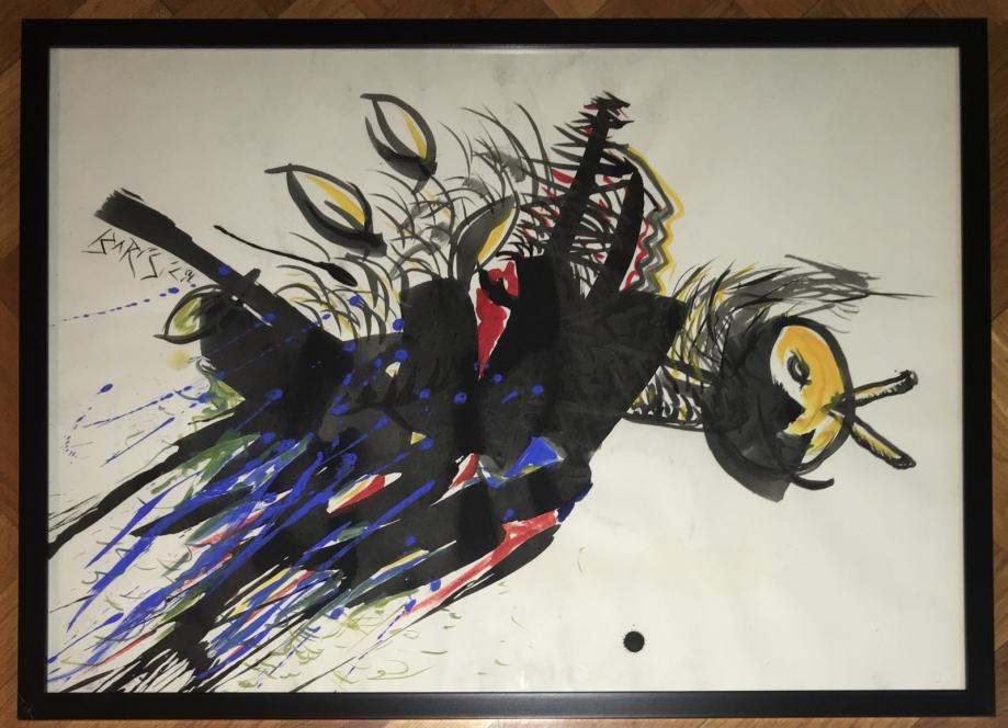 Izvrstan crtež temperom poznatog hrvatskog kipara, slikara i profesora na ALU Zagreb, Petra Barišića. Uokvireno i ostakljeno. Dimenzije s okvirom su 73x53cm.