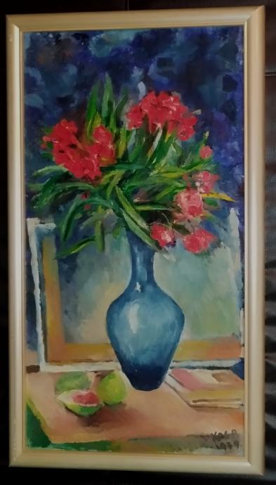 Ulje na platnu (kaširano na lesonit) iz 1979.g. hrvatskog akademskog kipara i slikara. Ukupne dimenzije 71x41cm.