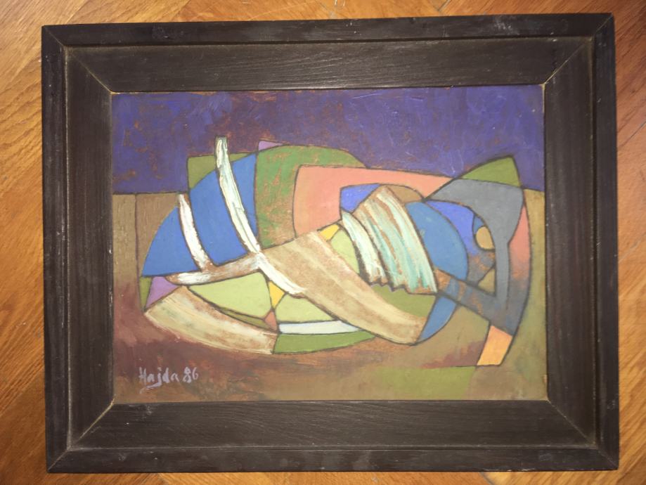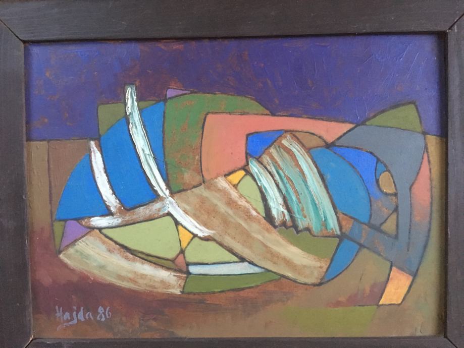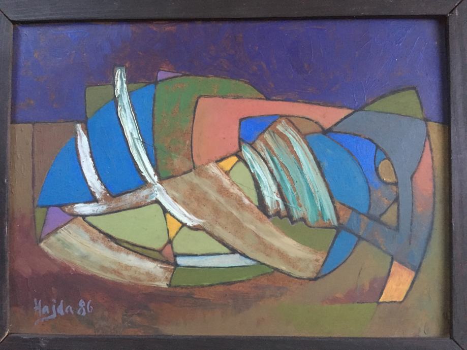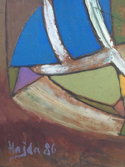 Ulje na lesonitu iz 1986. češkog akademskog slikara Petra Hajde. Apstraktni motiv. Dimenzije s okvirom su 39x31cm. Certifikat sa potpisom i žigom na stražnjoj strani slike.