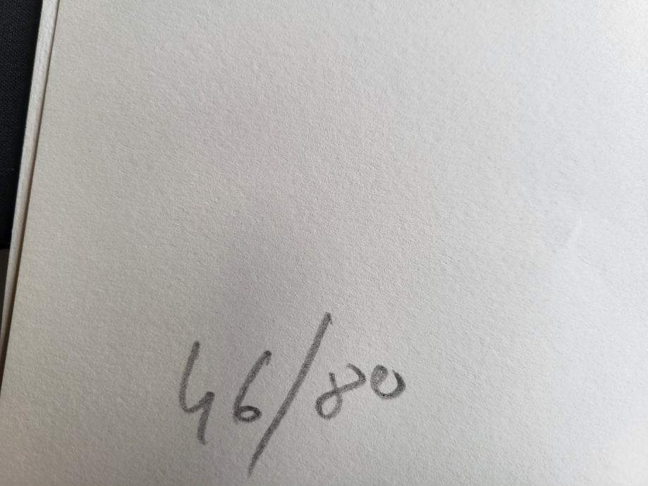 Potpis umjetnika grafitnom olovkom, numeracija: 46/80