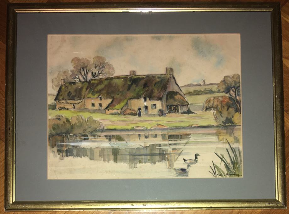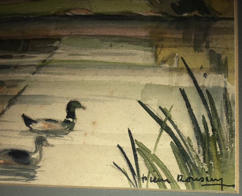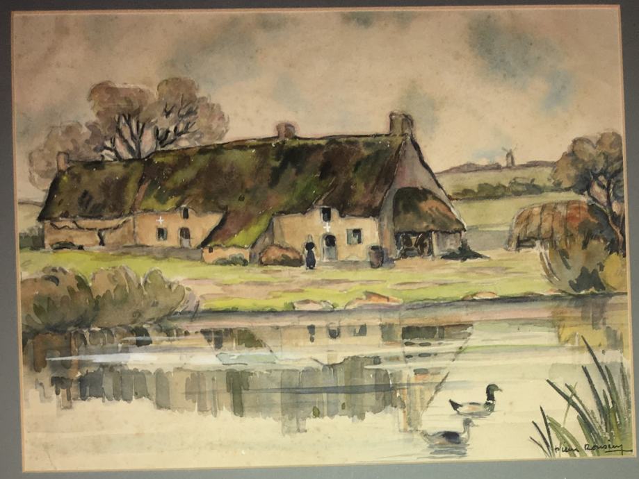 Akvarel poznatog francuskog slikara Pierrea Roussina. Seoski motiv. Potpis umjetnika u donjem desnom kutu. Uokvireno i ostakljeno. Dimenzije s okvirom cca 42x32cm (unutar paspartua 30x22cm).