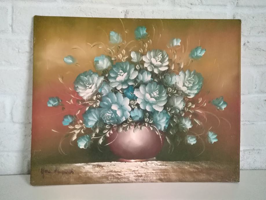 Slika Plavo cvijeće, ulje na platnu, 50cm x 40cm, autorica je renomirana slikarica iz Portofina, Mara Sanguineti.