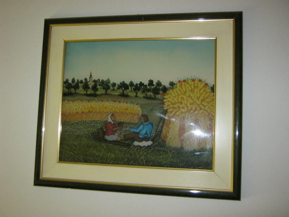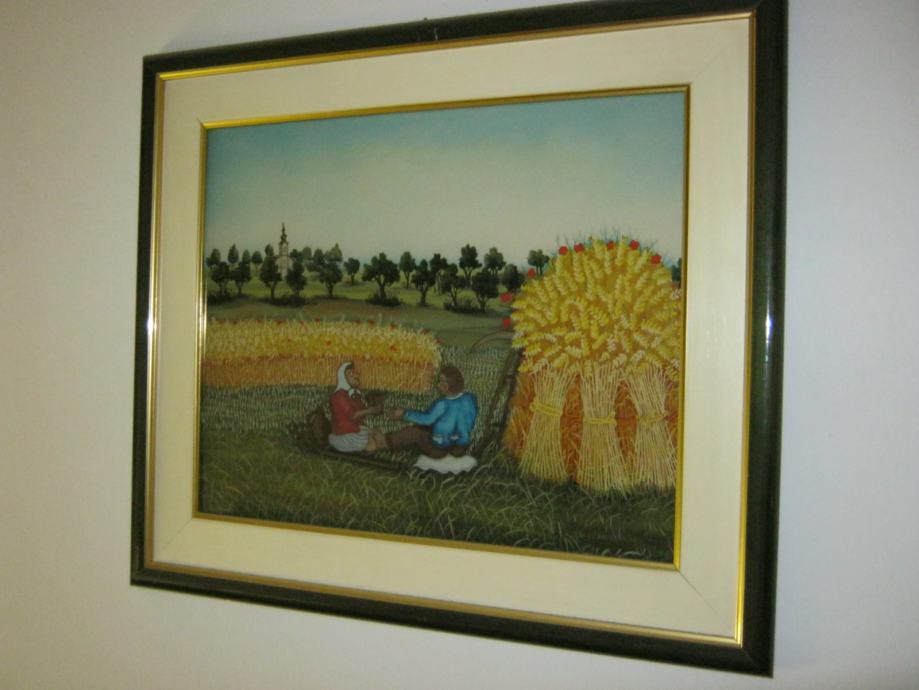Počinak u žitu , izvorna hlebinska naiva , ulje na staklu , 1996.god.,