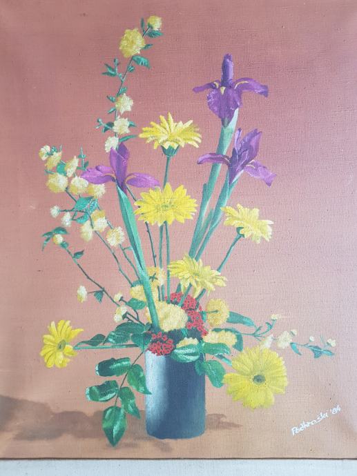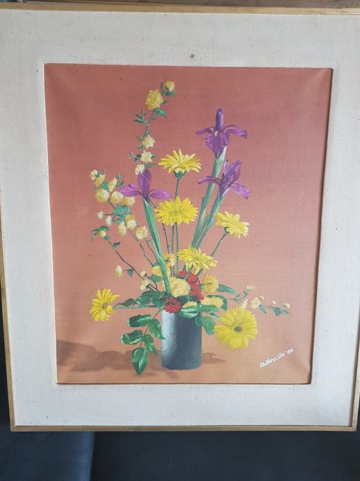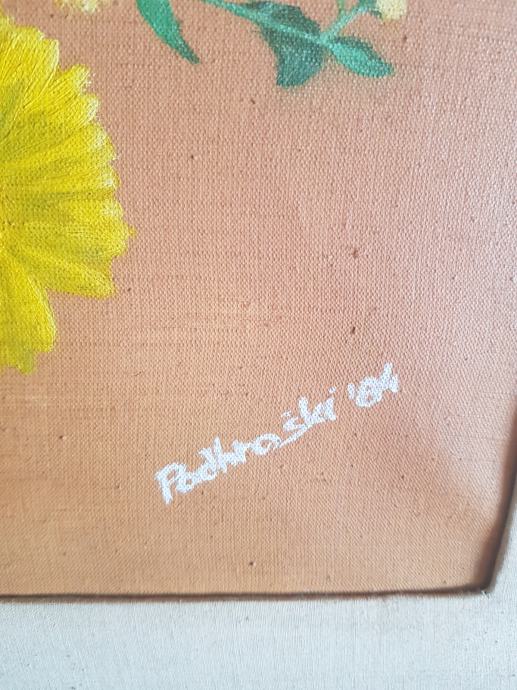 S okvirom cca 63 x 52 a samo platno cca 55 x 45 cm. Okvir je originalan iz 1984.god. i trebalo bi ga promijeniti