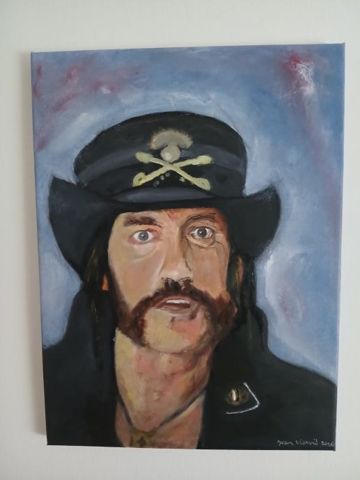 Slika je portret pjevača grupe Motörhead, Lemmy (punim imenom: Ian Fraser Kilmister).