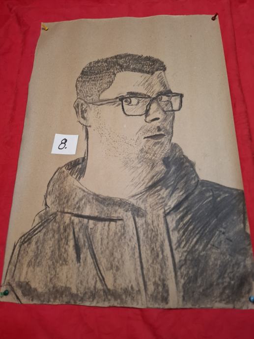 Rad na smeđem debljem papiru, slika nije obrezana u pravilan format.