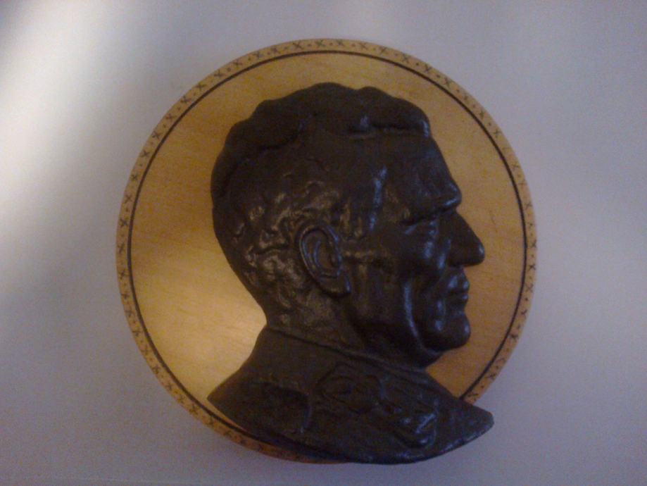 portret Tita ,od lijeva iz ljevaonice na drvenom tanjuru -paljen