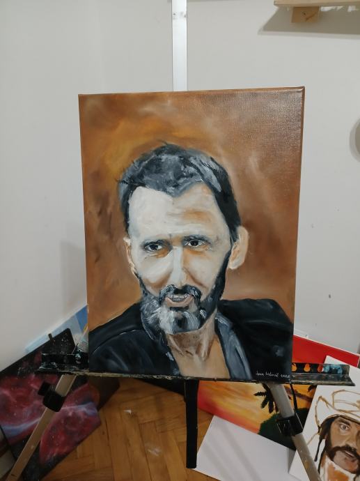 Slika je portret poznatog hrvatskog hard rock i blues pjevača te živuće legende Gorana Barea.