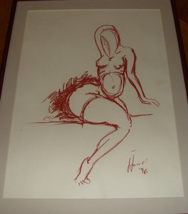 Akt u tehnici pastela akademskog slikara Josipa Šarića iz 1996.g. Uokvireno u drvani okvir i ostakljeno. Dimenzije sa okvirom su 55x41cm.