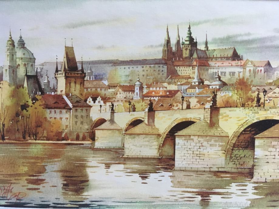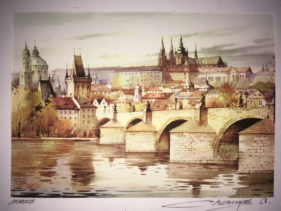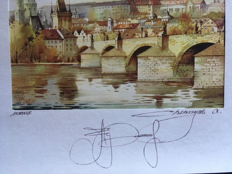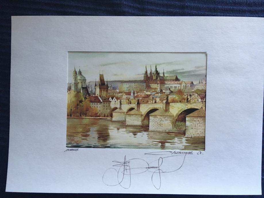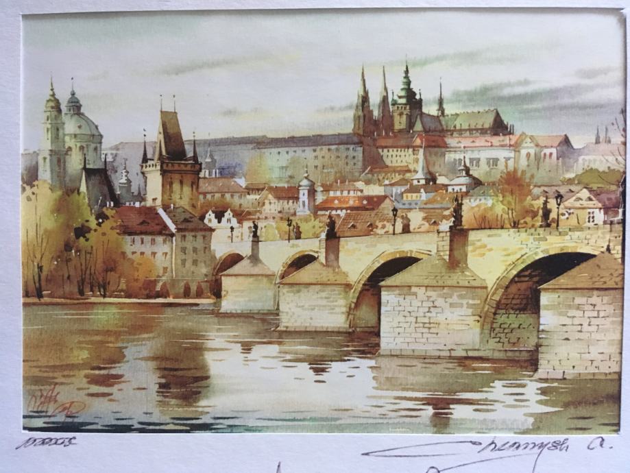 Potpisana grafika s motivom Praga meni nepoznatog autora. Dimenzije su 24x16cm.