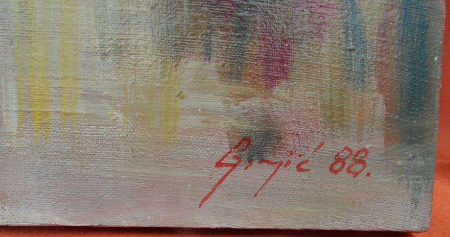 Dimenzije 54 x 42,5 cm. Slika je potpisana,ali je autor meni nepoznat.