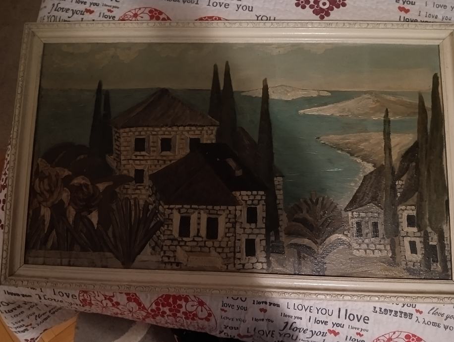 Prodajem staru sliku na platnu, primorski kraj, po dužini 95cm sa okvirom i po visini 58cm.