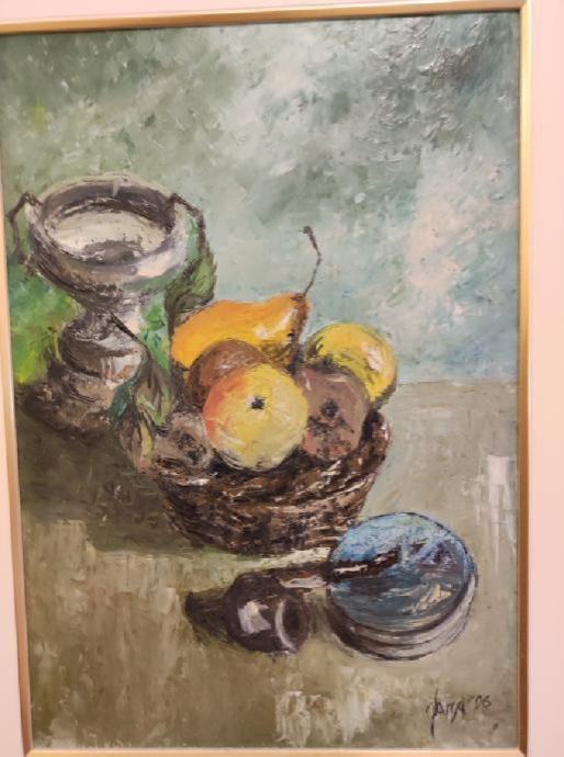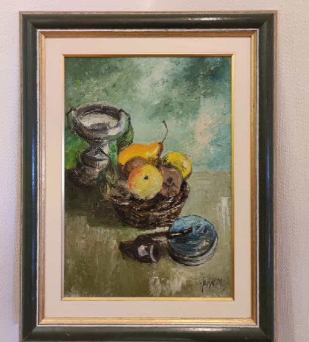 Vrlo kvalitetna umjetnička slika, ulje, od poznatog hrvatskog varaždinskog slikara Jurice Varge: Mrtva priroda.