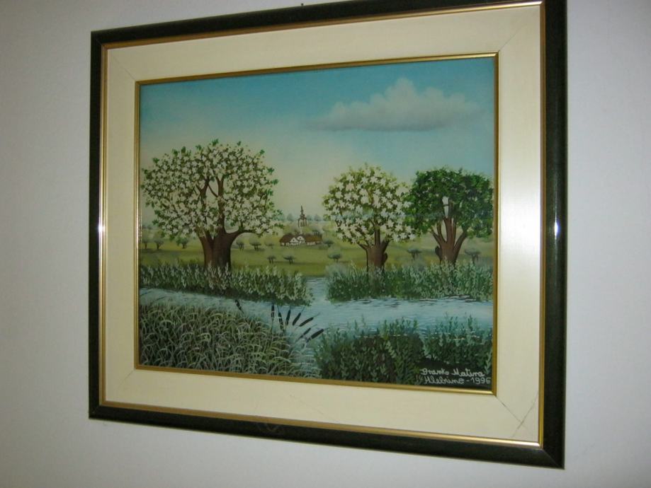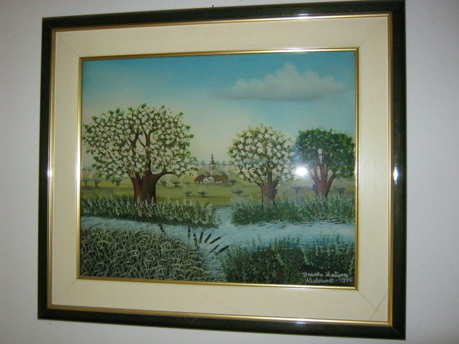 " Proljeće " , izvorna hlebinska naiva , ulje na staklu , 1996.god.,