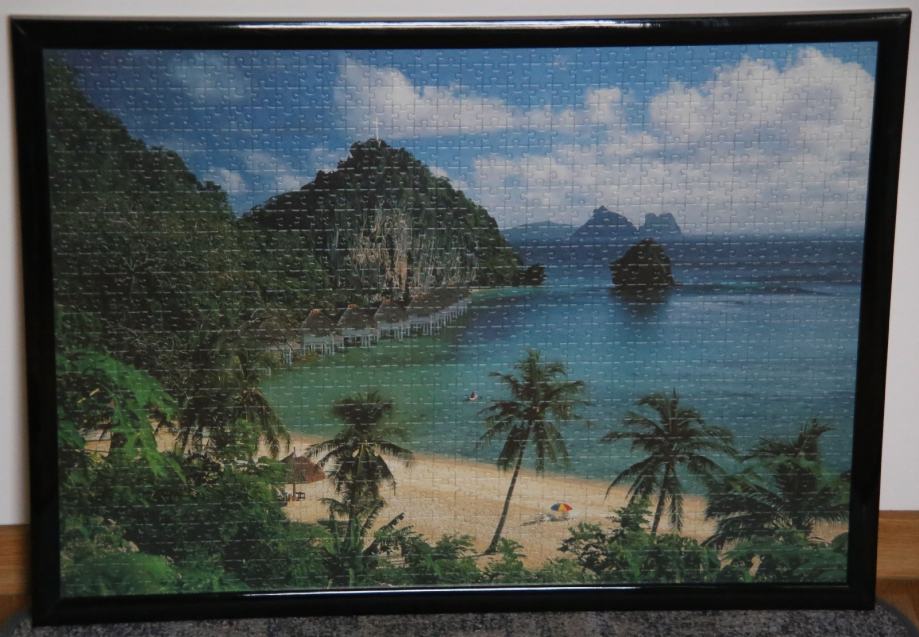 Prodajem uramljenu ostakljenu sliku od sastavljenih puzzla dimenzije 74x53,5 cm.