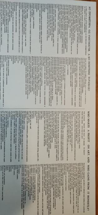 Pisci koji pišu za radio program o umetnicima i oni koji te škrabotine čitaju ili recituju. Spikeri i voditelji radio programa. Organizatori raznih intervjua i emisija za ili o kulturi i umetnosti. Pisci radio nekrologa o umetniku ili o nekom umetničkom pravcu. Svi saradnici i svo ostalo osoblje na radiju. Izdavačka preduzeća, njihovi službenicim,radnici i savetodavci. Tvorci biltena i urednici biltena o umetnosti. Nedeljni umetnički časopisi i osoblje koje piše za časopis ali i osoblje koje rastura časopise. Mesečni, tromesečni ili polugodišnji časopisi za kulturu i umetnost. Pisci monografija, biografija, sabranih eseja o umetniku i o umetnosti. Oni koji pišu anegdote iz života umetnika Oni koji pomažu umetniku da napiše autobiografiju. Oni koji usmenim putem prepričavaju anegdote i viceve iz života umetnika pa za taj trud zarade: cigarete, kafu, pivo ili rakiju ili konjak ili vino ili jelo itd … Umetnički kritičari svih fela, godišta i opredeljenja. Knjižare koje prodaju knjige, časopise, reprodukcije i originalne grafike umetnika i neumetnika. Antikvarnice, antikvari, privatni prodavci, posrednici i tajni preprodavci. Trgovački putnici i transportna preduzeća.