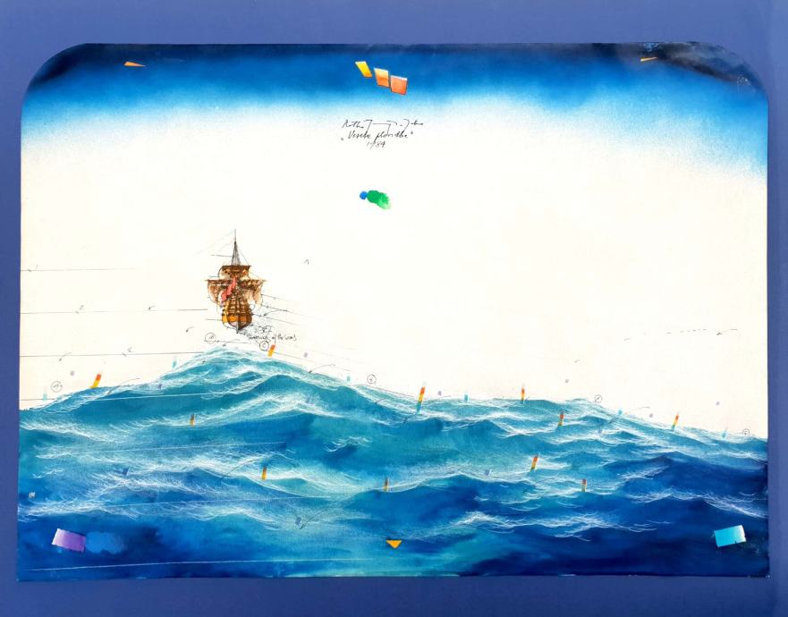 Ratko Janjić Jobo "Vesele plovidbe" tempera tuš 60x70cm; iz 1984. god
