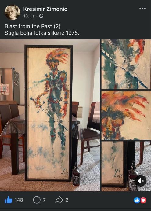 Jedinstvena umjetnička slika na lesonitu od hrvatskog umjetnika Krešimira Zimonića. Dobio na poklon, preuređujem stan pa nemam kud s njom.
