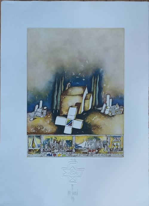 Josip Vaništa, grafika Selo Pičoti 50x70 cm